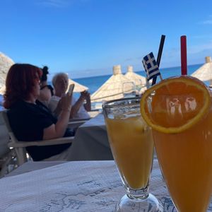 ペリヴォロスビーチには1時間以上の滞在だったので、ランチをしてから水着に着替えて海に入る予定でしたがランチを食べ終わるのが遅くなってしまったため着替えずに足だけ海水に浸かることにしました。6月上旬は水がかなり冷たかったため、海に入らなくてもよかったです。