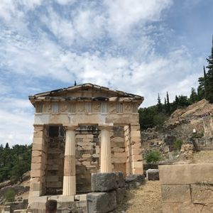 神聖なアポロン神殿の一部が残る山奥の斜面とそこからの渓谷の眺めは素晴らしかった。入り口付近に発掘された遺跡を展示した博物館があり当時の姿が垣間見られた。数回の地震やその後の一部修復で遺跡は一部しか見られないため全体をイメージするのは難しかった。ギリシャ神話を有る程度読んでアポロンの神の前知識があればもぅ少し理解できたと思う。通常売店が有り遺跡の説明書など売っているので、それを期待したが、売店は無くビックリ、驚きだった。博物館の金の展示物にアポロンと姉のアフロディア(?)、母親の説明が少し有っただけだった。これから遺跡を観に行く人は事前下調べをお勧め。