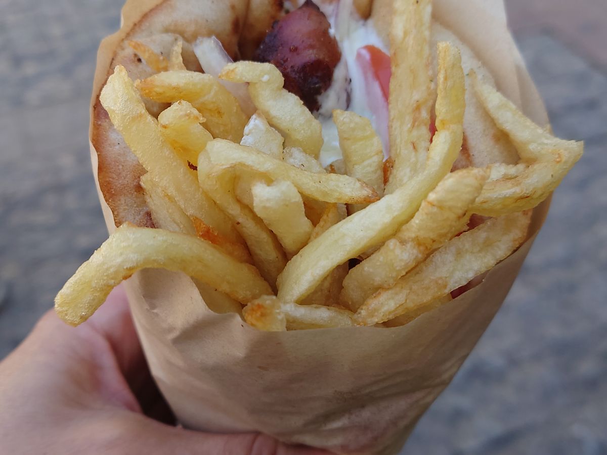 途中で食したハチミツたっぷりのドーナツ、ソウルフードのスブラキはとても美味しかったです。私達にはボリュームたっぷりで解散後のランチは不要でした。