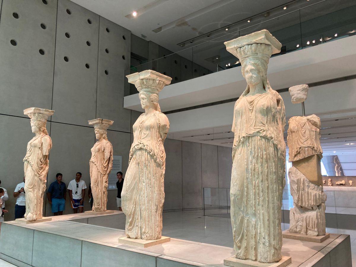 パルテノン神殿と同じように造られたアクロポリス博物館には、本物の女神像たちが展示されています。また、博物館そのものがパルテノン神殿と同じように造られたと知り、感激!