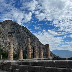 世界遺産デルフィ遺跡の中でももっとも有名なのが、アポロン神殿。神のお告げを伝える神託所としてはギリシャ最古のアポロン神殿では、「汝自身を知れ」「過ぎたるは及ばざるがごとし」などの格言が刻まれた壁を今も見ることができます。貴重な建造物を数多く残した古代ギリシャの中でも特に重要な場所であったデルフィには、今もどこか畏怖の念を抱かせる神聖な空気が漂っています。周囲にはパルナッソスの険しい山々、目前にはプレイストス河の深い渓谷という環境が、神秘的なムードを一層盛り上げます。清らかな気持ちで黙考したくなる、そんな観光スポットです。