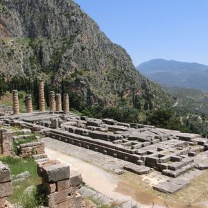 世界遺産デルフィ遺跡の中でももっとも有名なのが、アポロン神殿。神のお告げを伝える神託所としてはギリシャ最古のアポロン神殿では、「汝自身を知れ」「過ぎたるは及ばざるがごとし」などの格言が刻まれた壁を今も見ることができます。貴重な建造物を数多く残した古代ギリシャの中でも特に重要な場所であったデルフィには、今もどこか畏怖の念を抱かせる神聖な空気が漂っています。周囲にはパルナッソスの険しい山々、目前にはプレイストス河の深い渓谷という環境が、神秘的なムードを一層盛り上げます。清らかな気持ちで黙考したくなる、そんな観光スポットです。