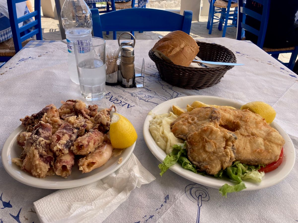 エギナ島内の遺跡、神殿、修道院、ビーチ、街の散策ができるお得なツアーです。修道院は古いギリシャ正教の建物で、現地の方々が参加するミサを見学することができました(ツアーは日曜日のみのためどの回も参加できると思います)。エギナ島はアテネから船で1時間で、船酔いの心配もなく、片道1時間のクルージングを楽しむことができます。ランチは自由時間になります。マリナと呼ばれる美しいビーチの小さな町で、シーフード料理を海に面したレストランで食べることができます。私はイカフライのカラマリや白身魚フライをいただきました。