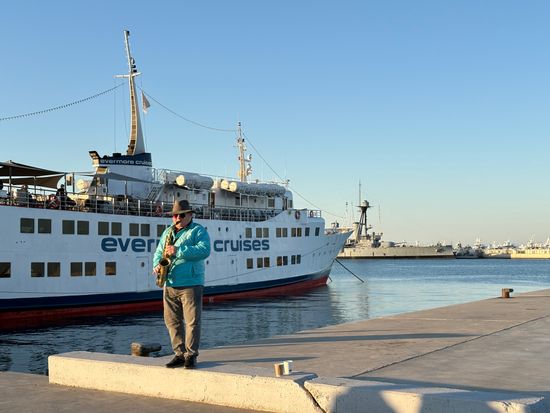 バスに乗って港へ行くと、サックスを吹くおじさまが出迎えてくれました。演奏にのせて歌っていたら「上を向いて歩こう」と「だんご3兄弟」を演奏してくれて神確定ファンサをくれて嬉しかったです!