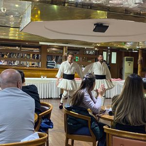 船上でのビュッフェは味付けもよく、満足しました。ギリシャ伝統のダンスも披露してくださり、エンタメとしても楽しめました。また、当日は日本人団体客が同乗していたため、日本語アナウンスもあり、聞き逃さずに済んでラッキーでした。