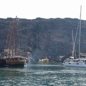 ティラシア島を出た後はイアの町を海から眺めたあと、船はアティニオス港まで戻ります(ここも以前の「歩いてイアに登った」という書き込みとは異なる)。