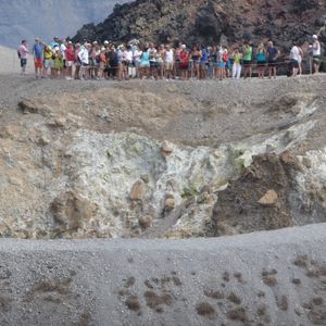 ケーブルカーを降りても出迎えなどはなく、また電話すると、参加するツアーの船はもう行ってしまったから別のツアーの船で向かってくれと言われ、その出発時間まで40分待機。40分後に船で火山島まで連れて行ってもらい、本来乗るはずだった船とキャプテンを紹介してもらいました。火山島の散策はもう始まっており、駆け足で散策し、船に戻ったタイミングで他の同じツアーのお客さんと合流できました。