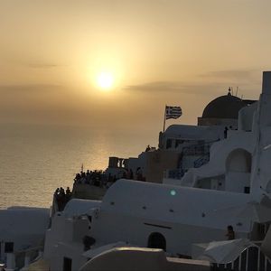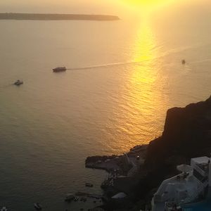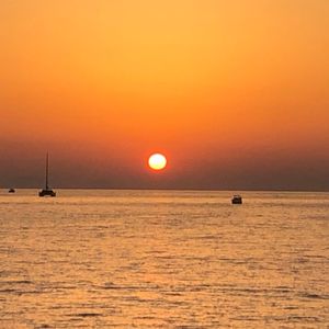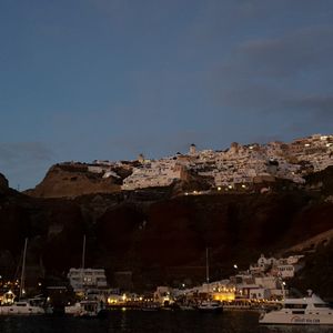 イア近郊の海に、サンセットを見に来る船が大集合しました。この日は雲があり、海に沈む太陽は見られませんでしたが、とても美しい夕日でした。そのあとammoudi湾に戻るのですが、海から見るoiaの街は本当に本当に美しくてこれを見るためだけに船に乗ってもいいと思います。