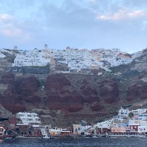 海から眺めるフィラやイアは、雪がかぶったアルプス山脈みたいで一見の価値があります。