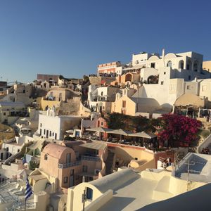 このツアーで、チケットの受けとり方法を直接旅行会社に行く方法を取ったので、担当の女性がとても丁寧に説明してくれ、お陰でフェリーも、しっかり座ることができ、安心してツアーを始められました。島に着いても、送迎の車が見つかるか心配でしたが、分かりやすい位置にいてくれるので、心配ありません。ホテルはペリッサビーチ側を希望し、そこに行くことができました。イアには離れていますが、ツアーなどに参加すれば夕日鑑賞に全く問題ありません。ビーチが近いので時間ができたら泳いだり、食事したり、バーで飲んだり買い物をしたりと、何をするにも便利な場所でした。朝食もプールサイドで取るのですが、ブーゲンビリアとサントリーニ名物の猫達に癒されました。素敵なホテルでしたし、何よりもホテルのスタッフが本当に親切で、常に気に掛けてくれたので、心からくつろいで楽しめました。本当に良い旅となりました。