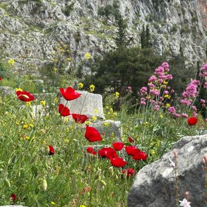 デルフイでは遺跡のところどころに咲くアネモネの赤い花がとても印象的でした。デルフィの神殿遺構を上から見るとまさにこれぞザ・ギリシャという感じがします。