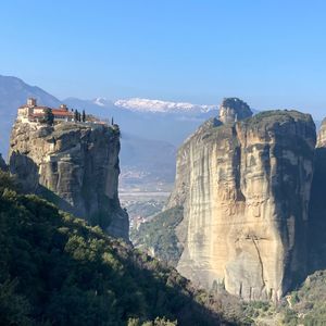 メテオラは、写真では味わえない迫力があります。修道院を訪問する前に、最初にイコンの土産店を訪問しましたが、制作方法をユーモアを交えて分かりやすく説明していたので、イコンに関心のない私でも楽しむことができました。6か所ある修道院のうち、建物内に入るのは2か所です。木彫り等内部の装飾品が素晴らしかったです。