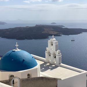 いつか行きたいと思っていたミコノス島とサントリーニ島にたっぷり3泊ずつできて、3回のフェリーチケットと、朝食付きのホテルと港の間の送迎も全てついて、良心的な価格で、本当に最高の2島巡りができました。前日に、予約していたピレウス港近くのホテルのフロントに、フェリーのチケットと送迎ピックアップの時刻が詳しく記載された各ホテルのバウチャーがセットになって届いていたので、翌日から安心して出発する事ができました。フェリーは追加料金で高速船に変更もできるようです。私達は高速船で行きました。船によっては海側の座席指定も付いていて、穏やかなエーゲ海を眺めながら、ゆったりと船旅も楽しめました。しかも高速船は時間も早く、帰りのサントリーニ島からピレウス港までは約4時間でした。ホテルは三つ星を選択しましたが、事前にベルトラさんにホテルの場所の希望等を伝えた所、現地催行会社おすすめのホテルを紹介していただき、今回実際に宿泊して大正解だったと感謝しています。ミコノス島は、高台で、ホテルのバルコニーから真っ白なミコノスタウンの全景とエーゲ海と夕日が眺められ、しかもミコノスタウンまで徒歩10分くらいと、素晴らしいロケーションでした。サントリーニ島は、フィラのバスターミナルやフィラの街から5分ほどと近く、とても家庭的な温かいホテルで、ホテルから海と朝日も眺められました。もちろん、どちらのホテルもプールがあり、スタッフの方々が優しく親切で、朝食もとても美味しく、大満足のホテル滞在ができました。港でもホテルでもピックアップの時刻通りに担当のドライバーさんが来てくれました。ミコノス島は全景も路地裏も真っ白な建物が素敵で、街歩きが楽しかったです。サントリーニ島の方が観光客が多く賑やかで、ブルードームの教会と白い街が美しかったです。3泊したので、快晴の日にイアの素晴らしい夕日を見る事もできました。これまで何度も利用しているベルトラさんですが、今回も、安心・安定で、大満足の、心に残る最高に素晴らしい旅になりました。本当にありがとうございました!