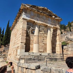 デルフィ観光では、滞在時間が1時間ほどだったので博物館まで行く余裕がありませんでした。劇場の上から絶景が眺められるということでしたが、私が訪問した時期は閉鎖されているようで劇場の上まで行くことができませんでした。デルフィ遺跡の中で一番みてみたいと思っていたアテナ・ブロナイアの神域もアポロン神殿から離れているらしく結局見ることができませんでした。てっきりツアーガイドが連れて行ってくれるものだと思っていたのでとても残念でした。最初はガイドの解説を聞き、残り時間は自由行動という説明でしたが、集合場所さえ確認しておけば最初から自由にいろいろみて回りたいという方はそれでも問題ないと思います。私はガイドの解説が長いなと感じたため途中からツアー団体から離れて自由行動にしました。