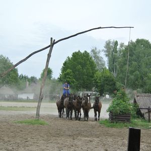 T.Sさんの某TV旅行番組ハンガリー編の再放送で、このショーを見て興味を持ち、ツアー日程に合わせてハンガリー旅行を計画しました。期待通り、ショーのフィナーレには、一人の御者が三列目の馬のお尻の所に立ち乗りして、前二列(一列に馬が五頭ずつ)計十頭の馬を走らせます。初めはゆっくりと、だんだんスピードを上げていき、最後は全速力で疾走します! まさに神業!大勢の観客も大盛り上がりでした。 ショーの後は、ワイン付きでボリューム満点のハンガリー伝統料理がふるまわれます。合わせて、伝統楽器の演奏もあり盛り沢山でした。 市内から車で1時間半ほどの小旅行、楽しめました。 ただ、宿泊ホテルからタクシーで集合場所まで送ってもらえるシステムですが、ドライバーが朝の渋滞のため、40分も遅れました。