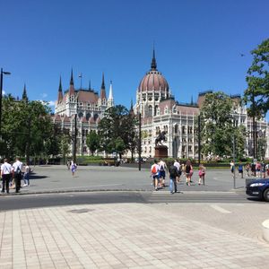 まずは、国会議事堂にいきます。最近修復が完了したばかりとのことで、とてもきれいな外観になっていました。内装も本物のゴールドがたくさん使用されており、ステンドグラスもきれいで、とても国会議事堂とは思えない建物でした。
