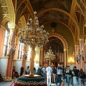 私一人を案内していただきました。事前に、併設されているハンガリーの歴史展示を10分位で説明していただいたため、国会議事堂の見学が深まりました。国会議事堂は、建物と装飾ともにすばらしく、ぜひ、皆さんに見ていただきたいと思います。ガイドは、ハンガリーの方でした。説明は、丁寧で的確で、日本語なので、たいへん分かりやすかったです。おすすめします。