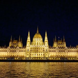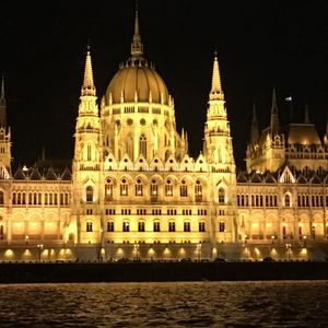 ドナウ川から眺めるライトアップされた国会議事堂は迫力満点です。