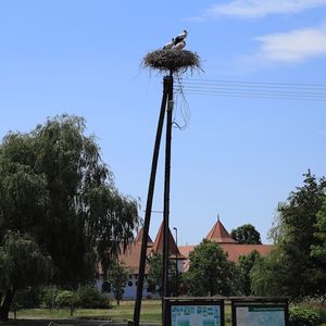 この辺りにくるとそこかしこの電柱や煙突の上にコウノトリの巣が見られます。何でもアフリカから渡ってくるとのこと。プスタ(ハンガリーの大草原)で営まれる牧畜生活の見学は二頭立ての馬車に分乗して向かいます。ちなみにこの日は全部で3台。