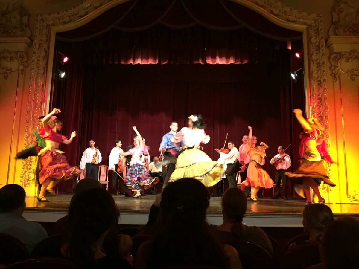 小さな劇場での小規模な民族舞踊と音楽でした。席は5列目中央で、快適に鑑賞できました。例えばスペインで地元のフラメンコを鑑賞するように、韓国でパンソリを聞き踊りを見るように、その国の伝統的な香りを感じることができる良い舞台でした。食事や踊りのお誘いなどが付いていない、シンプルでゆっくり味わえる舞台でした。少し踊りのタイプが偏っていたのと、音楽がロマ調なのはいいのですがいささか雑だったことから星4つにしました。