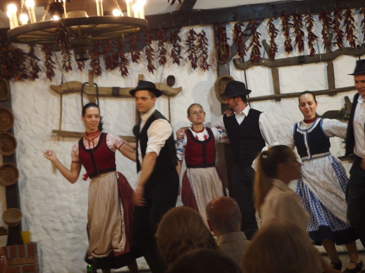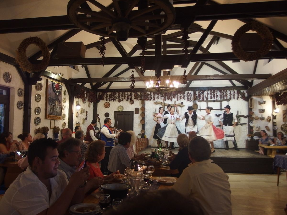 ホテルからピックアップしてもらって、少し離れた市街から会場のレストランへ。お食事は一通りのものが出て、飲み物もフリーでしたから、十分に満足できました。ショーはいろいろな舞踊のあと、参加者が加わってのイベントもあり、ずいぶんと盛り上がりました。帰りにはゲッレールトの丘からの夜景観賞。ちょっとだけでしたが、美しい夜景を楽しめました。