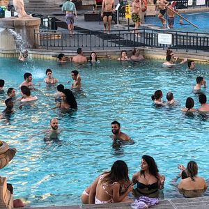私の水着はまるで洋服のような、温泉にそのまま入れる感じだったのですが、監視員に洋服で入ってる!と思われ、脱げと注意されました。肩が露出してる状態でないとダメっぽいですね。