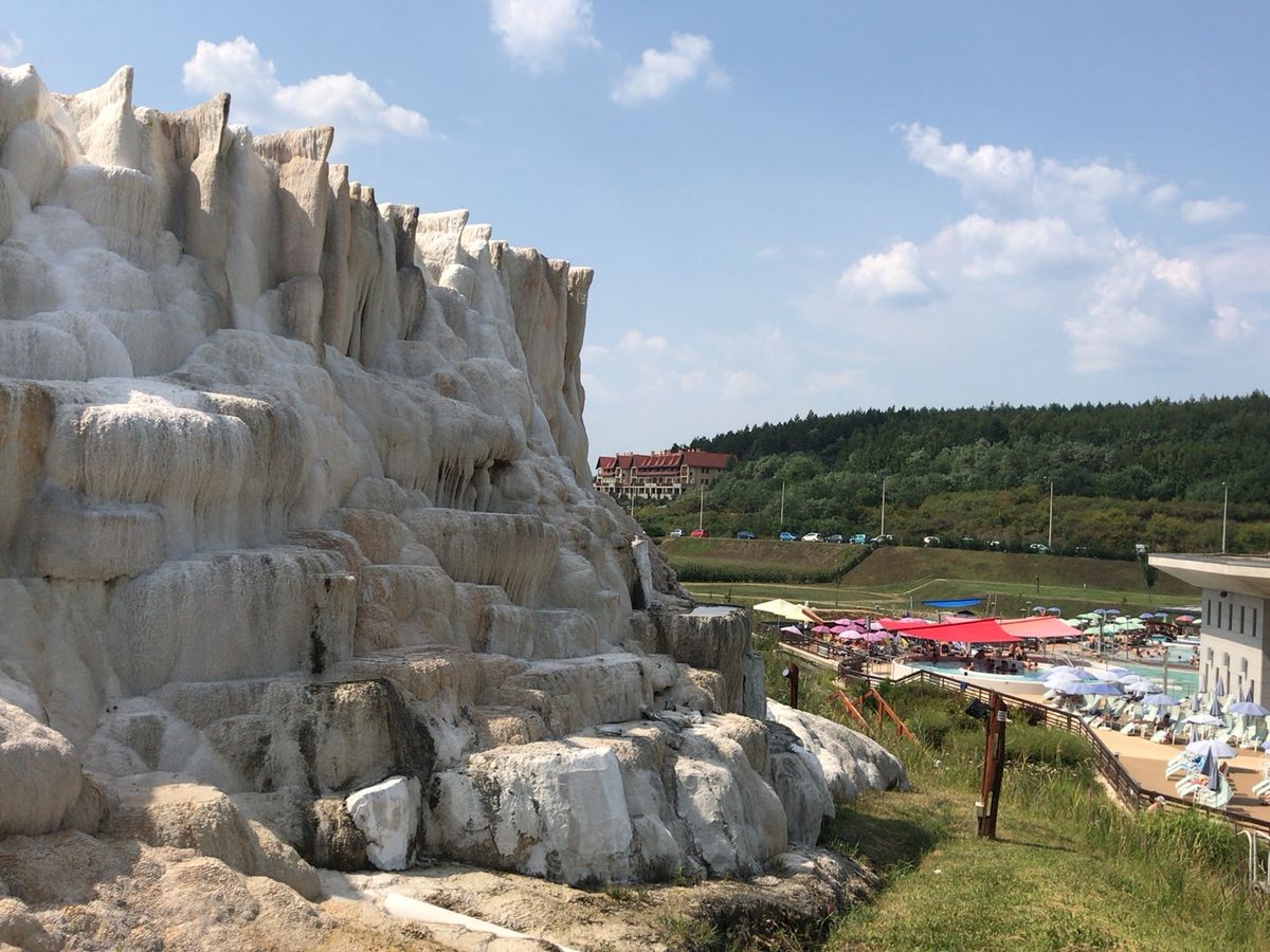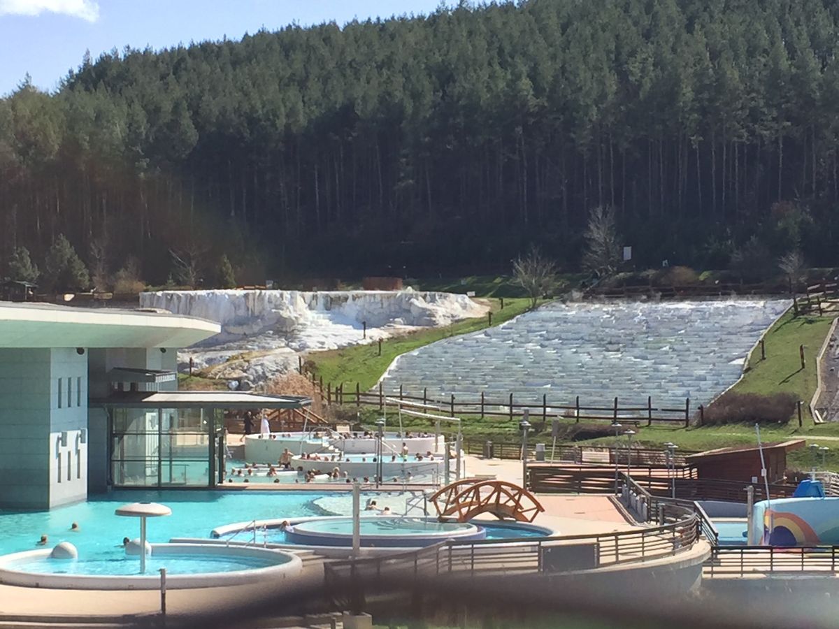 エゲルサロークは白い石灰華の棚があり、施設内に入ると温泉の臭いが漂い雰囲気抜群です。しかし、温泉施設内の突然のトラブルで入浴は不可能になりましたが、ガイドさんの計らいで、ブダペスト施設内のセーチェニ温泉に入られ満足です。