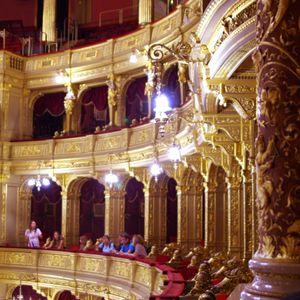 両方の内部とも絢爛豪華で圧巻でした。しかも、ただただ豪華なだけでなく落ち着いて上品な雰囲気もあります。特に、オペラ座ではホール、階段、客席(シシィの客席も)などの雰囲気を堪能することができました。客席に座って、2階席やバルコニー席を見上げると優雅な気持ちになれました。出発前にガイドブックやサイトで写真を見ていましたが、実際に行って見ると、想像をはるかに超える美しさでした。
