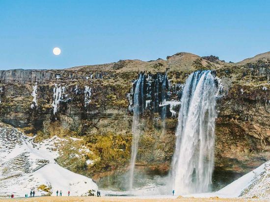 レイキャヴィークから南東に向かって海岸線を進みます。たびたび流れだした溶岩が生み出すなだらかに広がる黒砂のビーチや、氷河が溶けて流れ落ちる力強い滝など、アイスランド独特の風景を楽しむことができます。途中、ヴィーク村にも立ち寄ります。