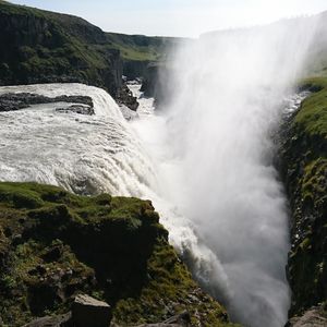 グトルフォスの滝が見たくてこのツアーをお願いしました。滝は予想以上に近くで見れて大迫力で満足でした。ツアーガイドも大変丁寧な方で集合時間も何度か確認してくれましたし、それぞれの場所での説明も簡単な英語でわかりやすく説明して頂きました。また夏季だったので午前はラバーラフティング体験が出来ました。もうビショビショです笑。朝一でラフティングの場所に着いたらウエットスーツ、ウエットシューズ、ヘルメットを借り、脱衣所で着替えます。(脱衣所は男女別ですが、女性脱衣所も仕切りなどは一切ないので水着はホテルから着て行った方がいいです)着替えた後はバスに乗り上流まで移動し、そこからラフティングが始まります。何隻かに分かれて下って行きますが、途中でジャンピングポイントがあり、一旦全員岸に上がります。そこでは8mから飛び降りる、5mから飛び降りる、飛び降りないという選択肢があり私は8mから飛び降りました。夏とはいえかなり水温は低いので寒いですが、すごく、気持ちいい体験です。私が参加した日は運良く天気がすごく良かったのでその後は多少で震えるくらいで済みました笑。各船のガイドさんはみんな陽気で容赦なく参加者を川に落とそうとします。なのでジャンピングポイントで飛び込まなくてもゴールに着く頃はほぼ全員ビショビショです。ゴールは最初の着替えた場所の近くなので川から上がったらバスで少し移動すると着きます。着いたら着替えますが、無料のシャワールーム、サウナがありますので冷えた体を温めることが出来ます。(私は利用しなかったですが)ラフティングもグトルフォスも大変良い体験でした。