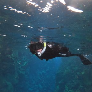 シルフラシュノーケリングとゴールデンサークルのセットのツアーを申し込みました。一人参加です。最初にシルフラです。小さいバスでピックアップされ、そのまま向かいました。まず事前のメディカルチェック表など用意してましたが当日バスの中で書かされました。英語が苦手な人はGoogle翻訳アプリなのどを事前にDLしてカメラでスキャンしながら書くといいです。英語は喋れませんが、ゆっくりわかりやすく話してくれる方だったので問題ありませんでした。(ドライスーツ着た私をニンジャって言ってました、笑)私の参加した時はほぼ女性。真冬の参加でしたがドライスーツなので寒さは平気でした!口コミで見たmont-bellの機能性インナー(ヒートテックだと汗かいたら冷えます)とウルトラライトダウン、下はヒートテックスキニーで爪先にカイロを貼りました。(足先冷たいので重要!)あと手が冷たくなると言っていたので手首にもカイロを貼りました。待ってる間が一番寒かったです。(最後のグループだったので)でも皆で寒い寒い言って楽しかったです。泳ぎの件は、私は泳ぎは人より得意な方ですが(小学校6年間水泳を習っていた)尚且つ、事前に沖縄でシュノーケリングを体験していましたが、寒さのせいか、(あとバタバタ足を動かしてはいけない、手は後ろ手に組むのでほぼ使えない)ほぼ足の力で進まなくてはならないので身体が動かしにくくなり後半はキツかったです。苦手な人は後半ガイドさんが引っ張ってくれてました。