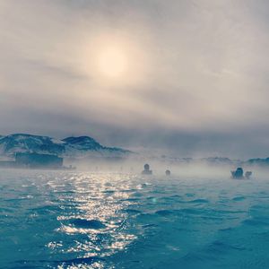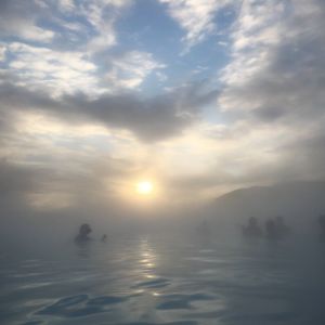 冬場の天候が悪い時期にあたり、吹雪のなかでのブルーラグーンでした。使っている分には暖かいけれど、顔は凍える寒さで修業状態になりました。