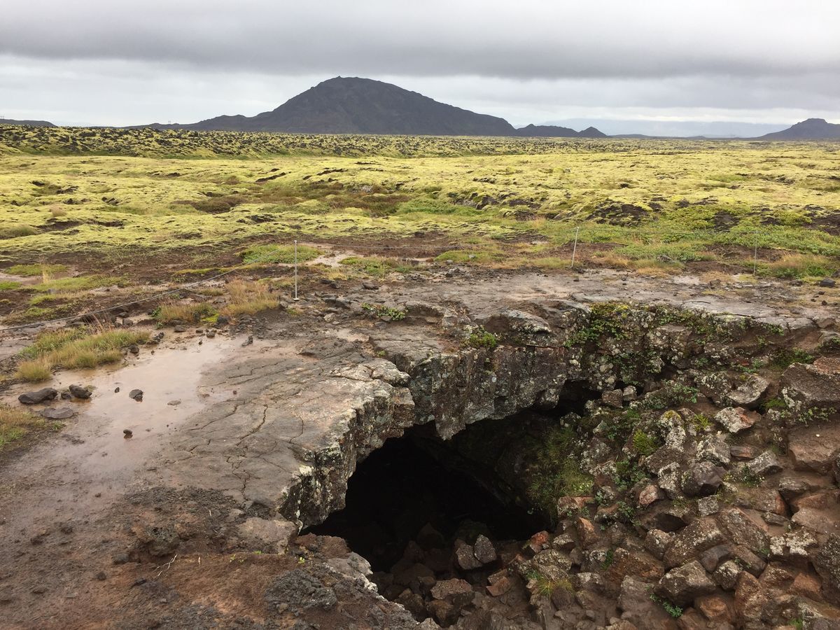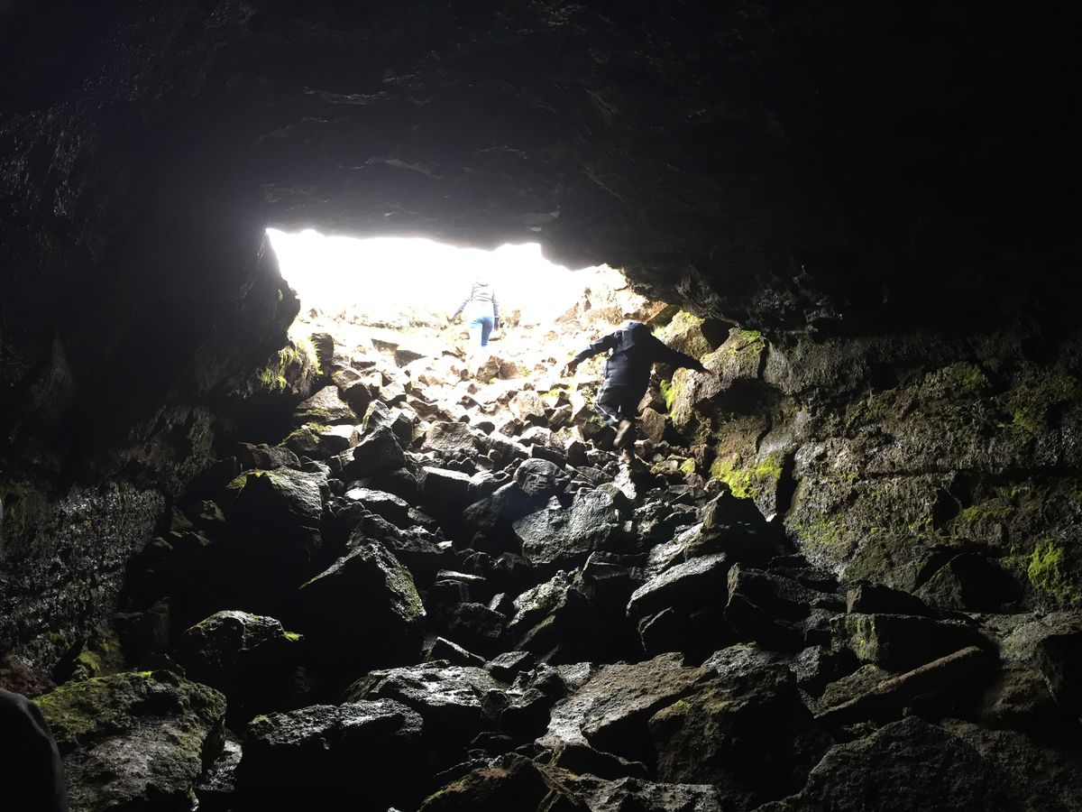 洞窟探検は鍾乳洞のようなものと思っていましたが、もっと狭くて坑道を行くイメージでした。ところどころふた手に分かれている道があり、coolな(カッコイイ)道を行くか普通の道を行くか選択をしなければなりません。体力的に普通の道を選びましたが、多くの人は厳しい道を選んで楽しんでいました。洞窟のある辺りはコケだらけの不毛な土地で、それまで見てきたアイスランドのどの土地とも違っていました。