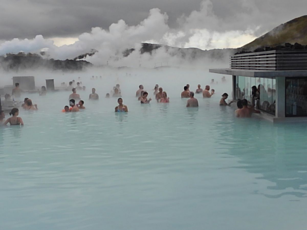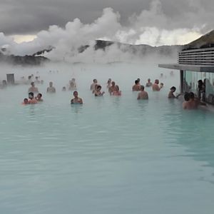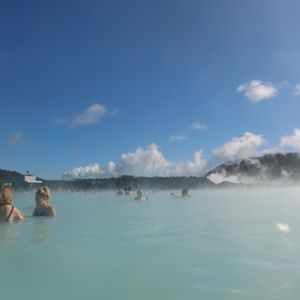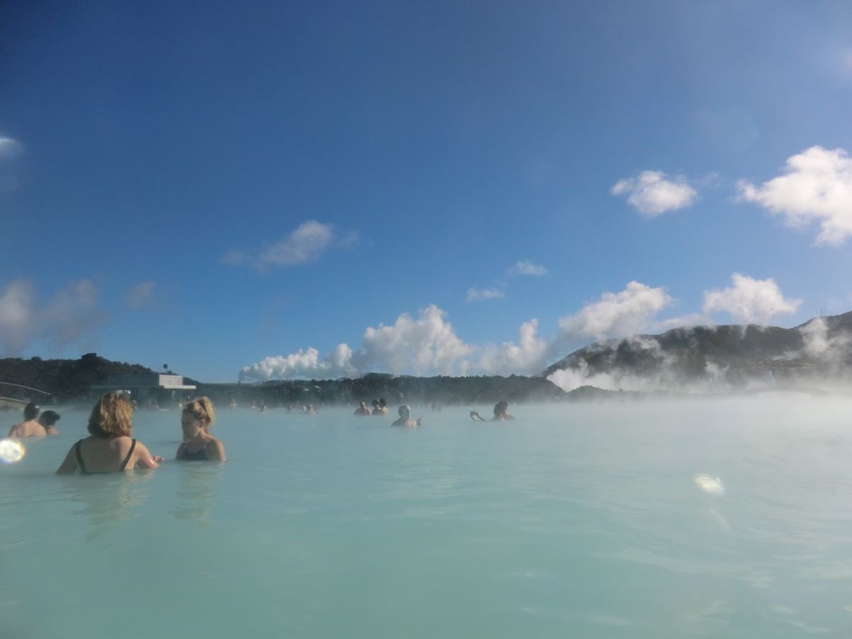 世界最大の露天温泉ブルーラグーンです.水着を着用しての入浴になります.かなり広く露天風呂の端から端までお湯につかりながら歩くと10分はかかります.温泉の温度は38度でぬるめですが塩分が含まれています.通常プランの中に泥パックが含まれており,お肌もきれいになります.また1ドリンクが無料でついており,露天温泉の中で注文し飲むことができます.また写真も撮影可能です.帰りの送迎はレイキャビック市内だけでなく空港へも行っていますので飛行機に乗る前に疲れを癒すこともできます.