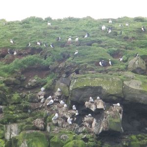 クジラを見る前に出港後まもなく、パフィン(ツノメドリ)が生息する島の真横をクルーズします。これが、思いがけずかわいい!