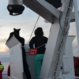 海上は風があり寒いので、ニット帽などをかぶって参加するとデッキでずっと海面を見ていても大丈夫だと思います。
