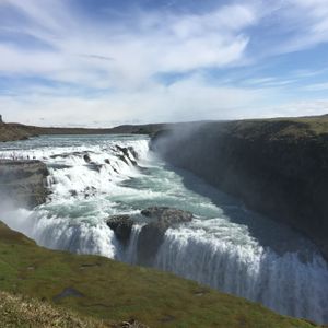 大きめのバンに乗り込み、まずはグトルフォスの滝へ。お土産ショップ横の駐車場で降りて、遊歩道を下っていき、滝の近くへ。滝は想像よりもずっと大きくて、日本の滝とはスケールが違う!滝の近くに行くと結構濡れます。バンを降りた場所とは異なる駐車場で集合し、出発。次の場所ゲイシールう向かう途中ガイドが特別に馬のいるところで車を停めてくれました。しばし馬と戯れゲイシールへ。駐車場の休憩所でランチを済ませるよう告げられて間欠泉のもとへ。数分置きに吹き上がるのでムービーを撮ろうと待ち構えていると思ってたより大きくて画面に入ってなかったりと何度か挑戦していました。駐車場に戻ってランチタイム。間欠泉を見るのに時間を使いすぎて、ランチは急いで食べたもののお土産を見る時間はなかった…。