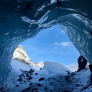 日本で中々体験できない雪の中のトラッキング体験。氷河でできた洞窟内をくぐるなど貴重な体験ができます。