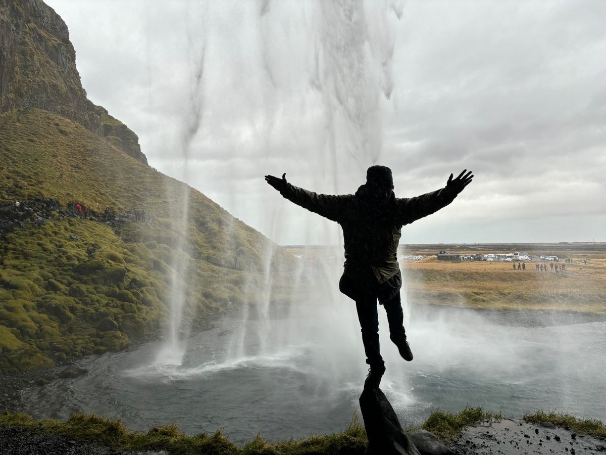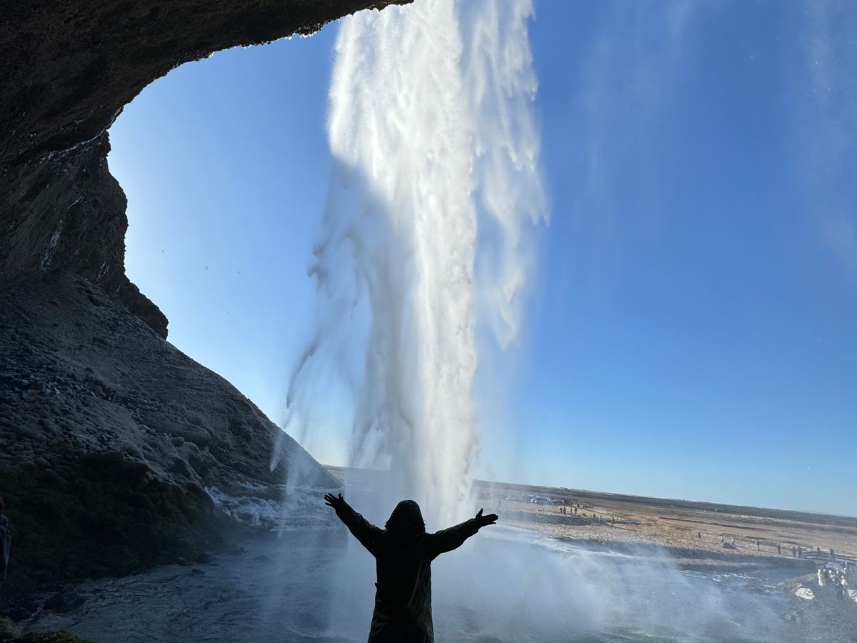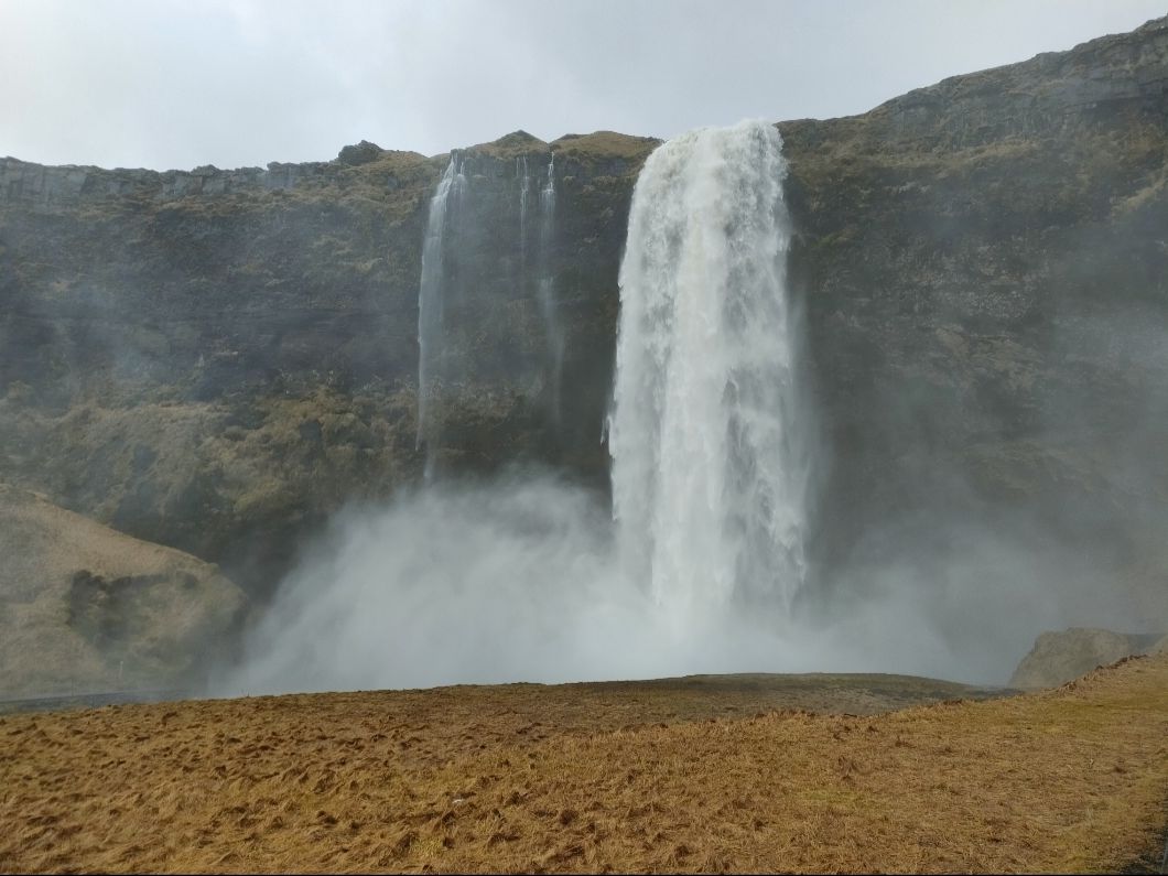 最初のスポットであるセリャラントスフォスは滝の裏まで行けますが、水飛沫がすごいのでレインコートがあるといいかと思います。髪の毛までびしょびしょでお風呂に入った後のようになりました。