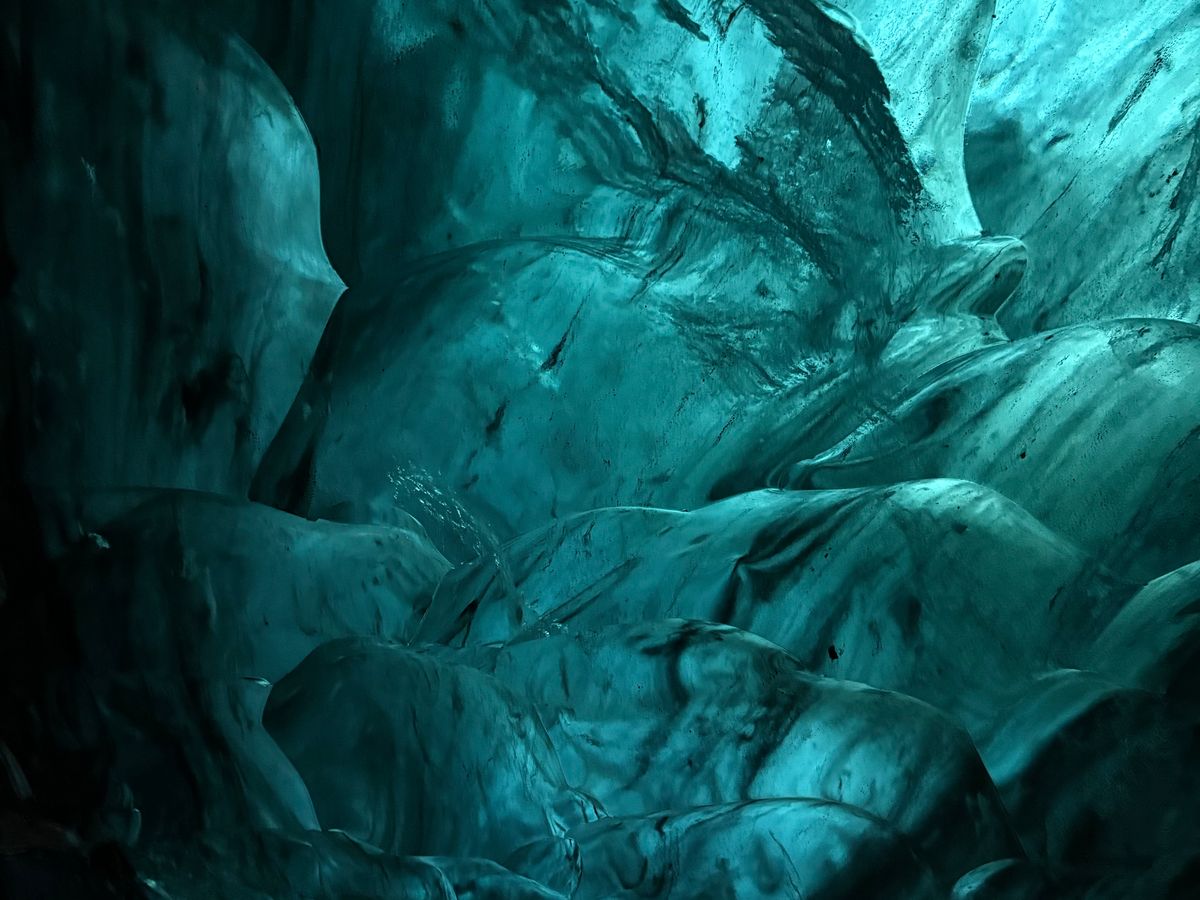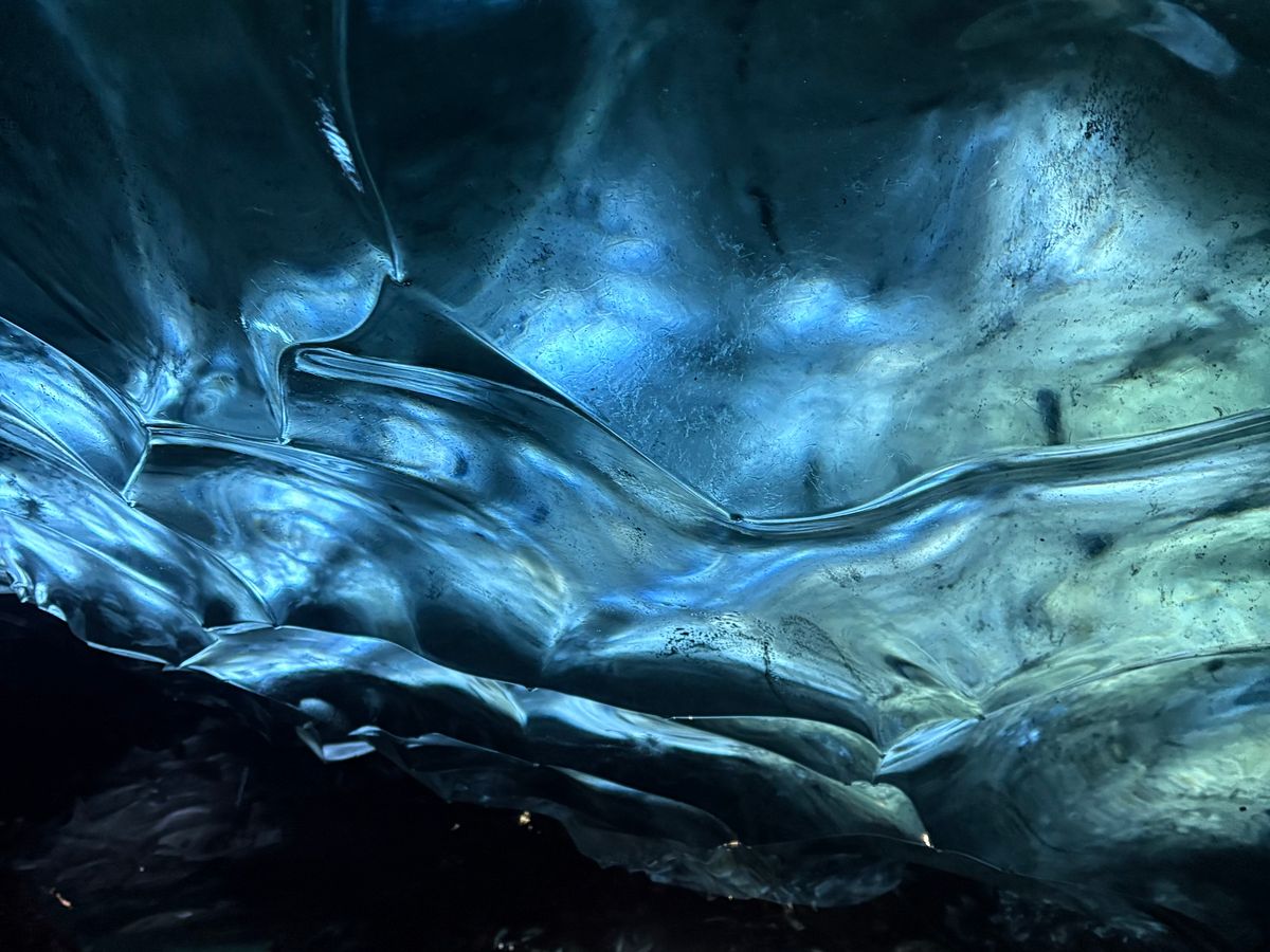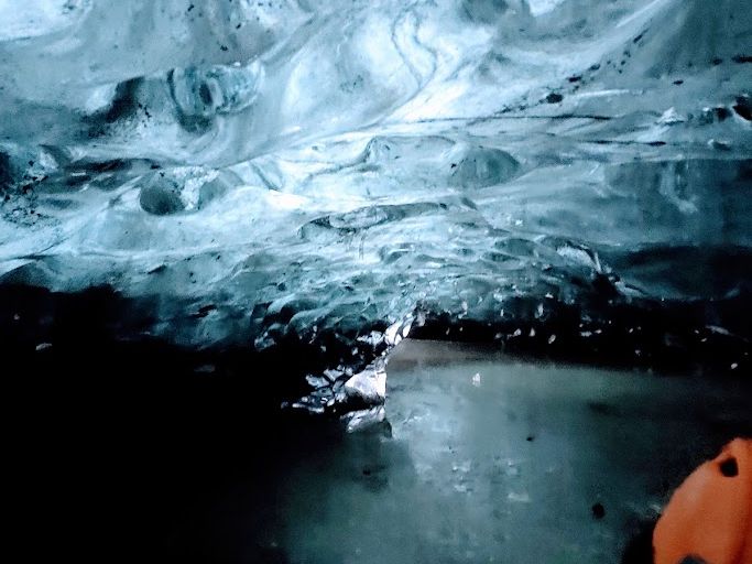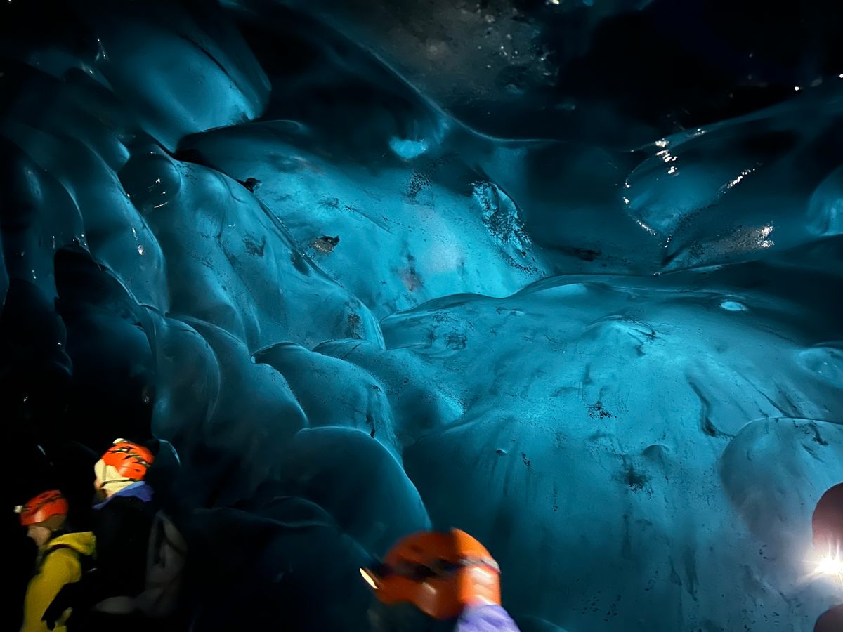 氷の洞窟は天候によっても入れる洞窟は日替わりのようですが、ツアー写真にあるほど大きい(長い)洞窟ではありませんでした。入り口〜突き当たりまで10〜15m程度でしょうか。それでも、突き当たりまでまで行き振り返ってみると綺麗な青の洞窟で、感動的でした。