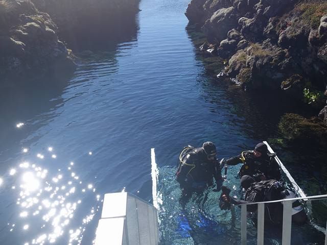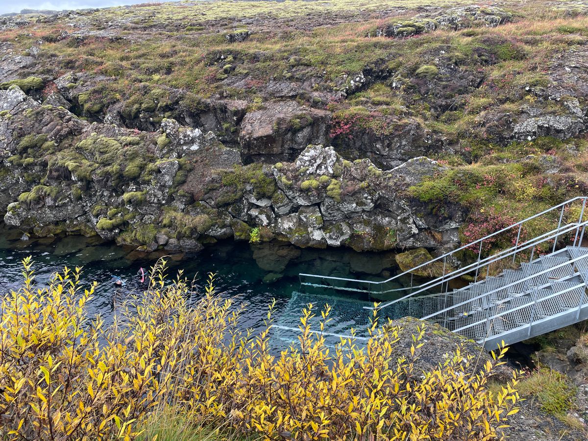 水に入ってからはゆっくり泳ぎながらたっぷり水の中を観察できて良かったです。スタート地点からしばらく進んでからは底の見えない割れ目が続く場所があり、10日弱のアイスランド旅行の中で1番印象に残っています。