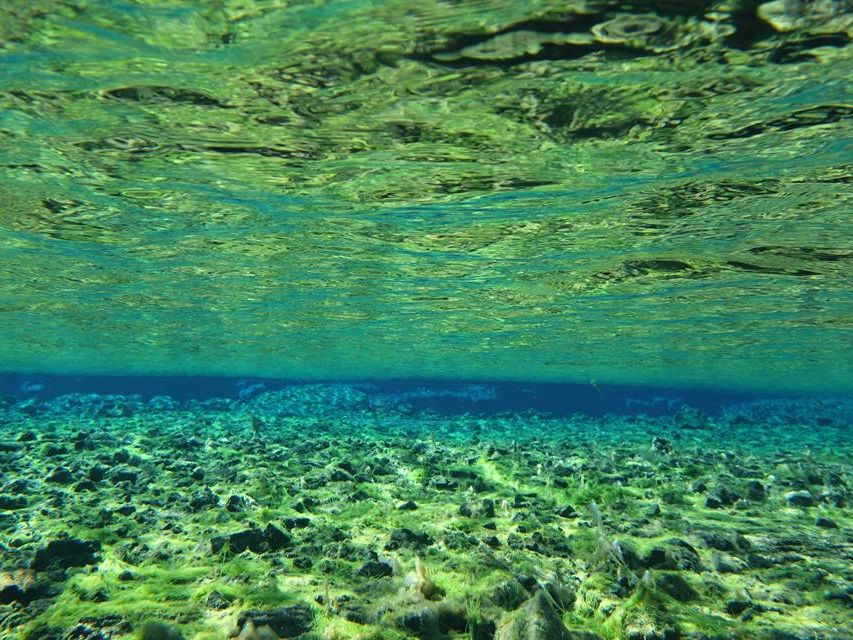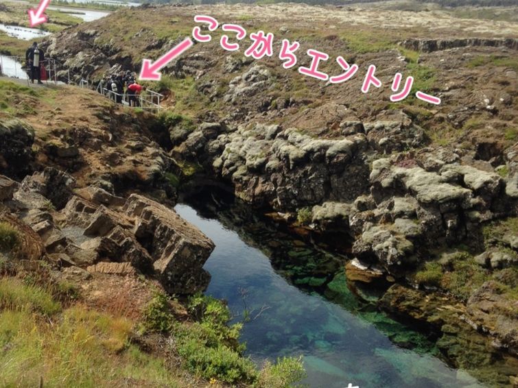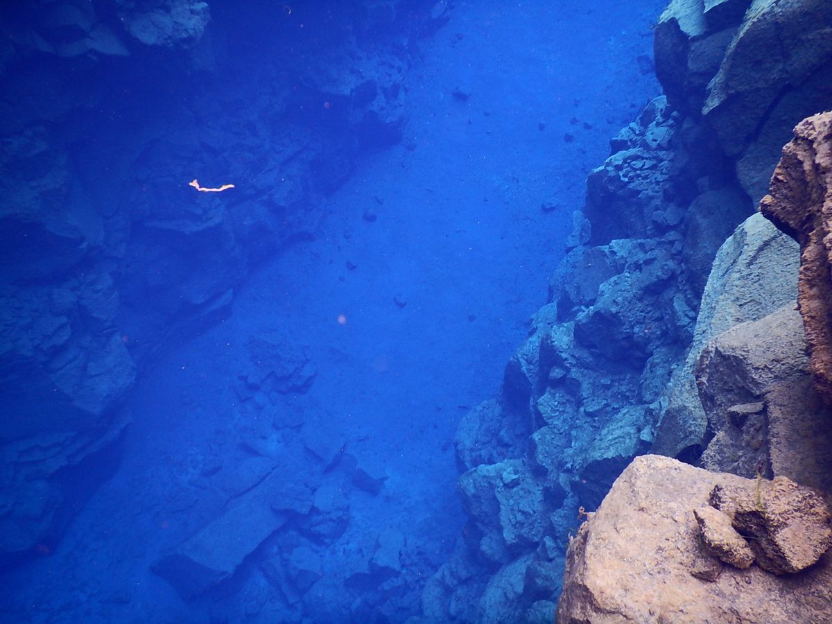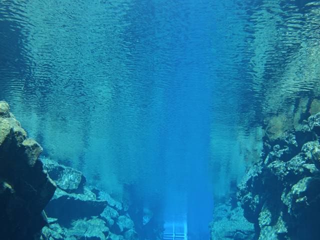 ヨーロッパ側とアメリカ側のプレートが、互いの方向から引っ張り合って生まれた亀裂に、火山岩で何ヵ月も濾過された雪解け水が湧きだし、しかも水温が低いので水中の生物もほぼ活動しておらずとても澄んでいます。
