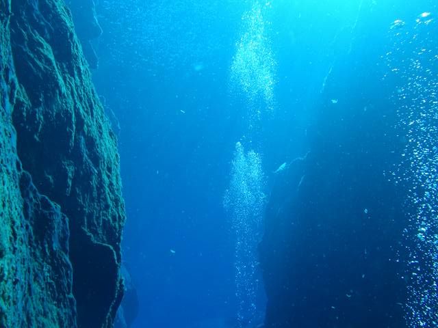 地球の割れ目も水の中ではひときわ幻想的でした。45分くらいかけて決められたルートをチームで回ります。