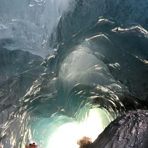 簡単なアイゼンをつけ氷河の上を歩き、少しだけ洞窟になっている場所に入ることができました。ガイドさんの柔軟な対応により通常の内容より楽しめたかもしれません。