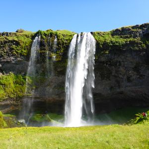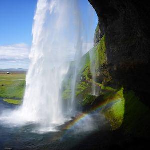 セリャラントスフォスで滝の裏に行く際は、全身びしょ濡れになりますので、バスを降りる際にはレインウェア必須です。