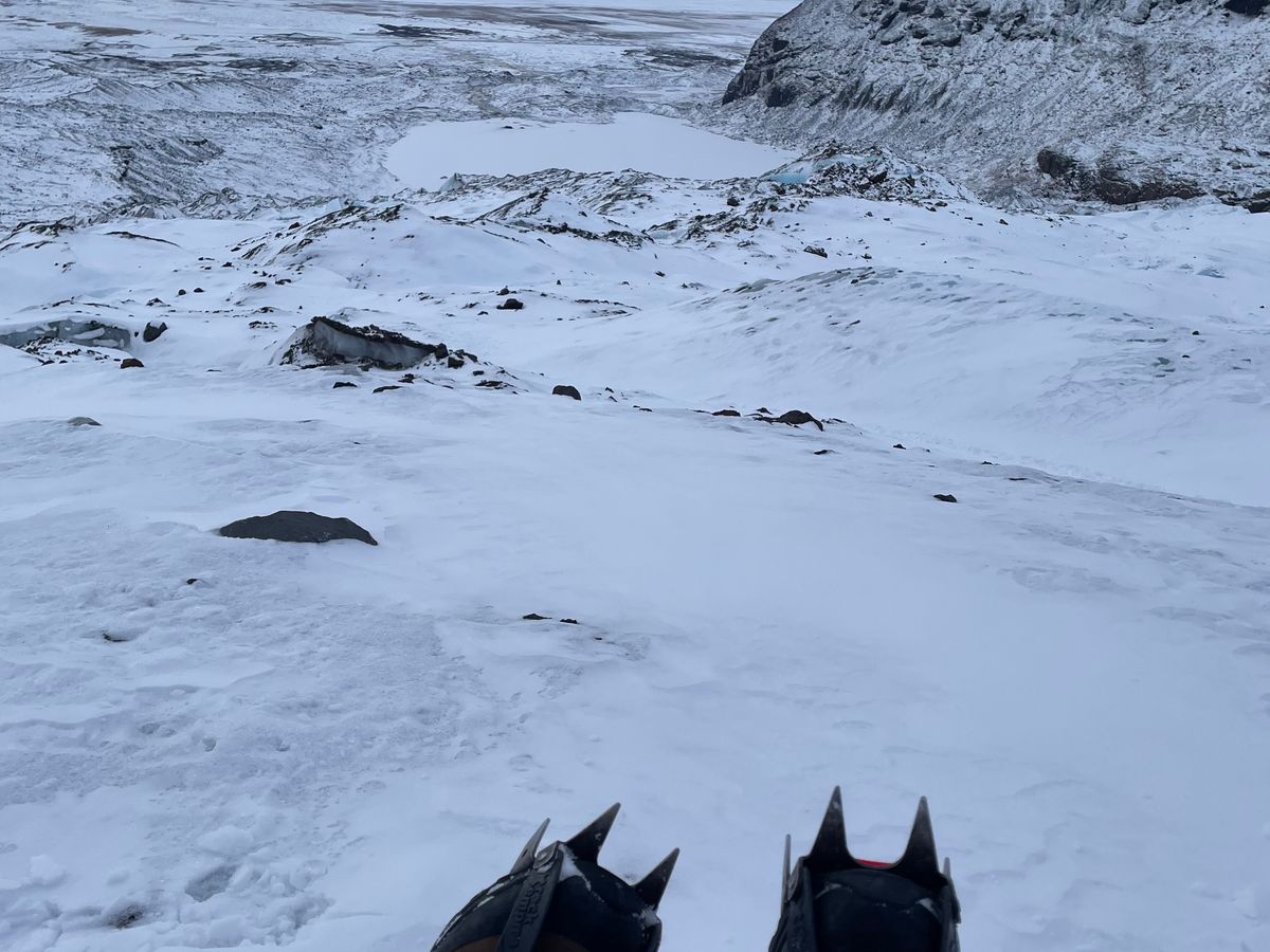 特に氷河は駐車場からずっと凍っているため、トレッキングシューズやスノーブーツでは確実にすべります