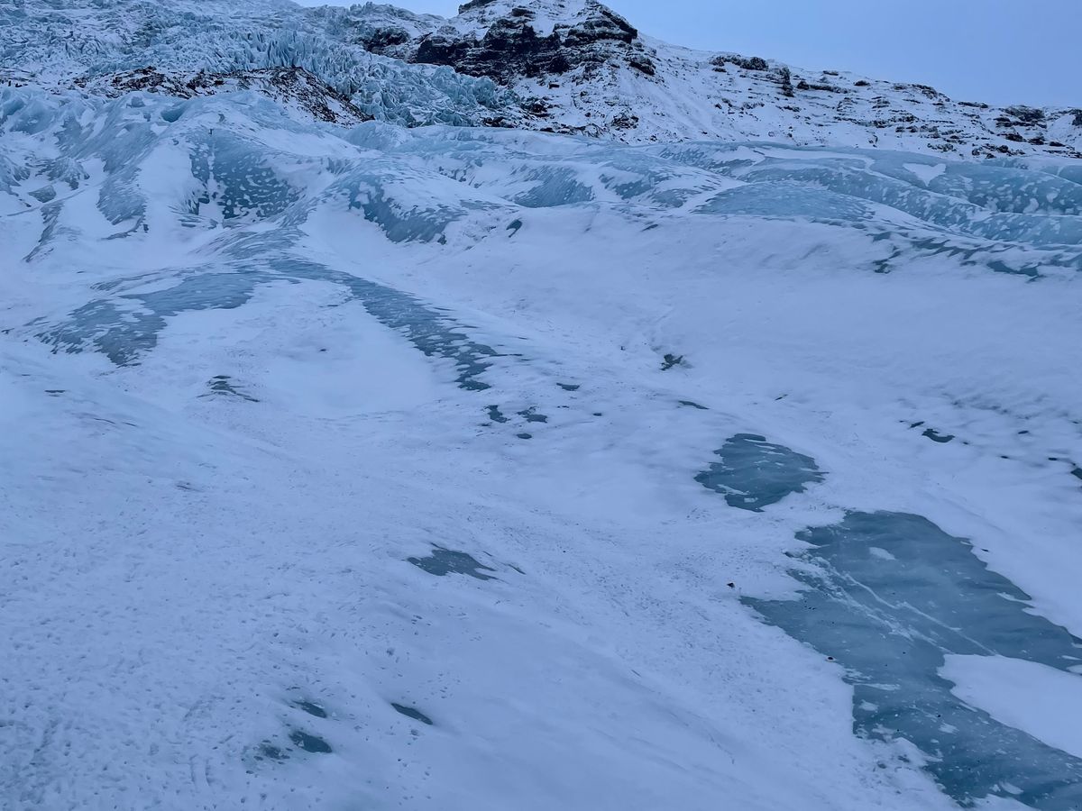 12/30に申し込みしてギリギリ1/3参加できました。ツアーは10人程度です。説明を受け、ヘルメット、ハーネスをつけバスに乗り出発。アイゼンとピッケルも与えられます。15分ほどして氷河の麓に到着、そこからは歩きで約2時間登ります。しんどいですが価値はあるのでぜひ参加勧めます。見たことない景色があり、一生忘れません