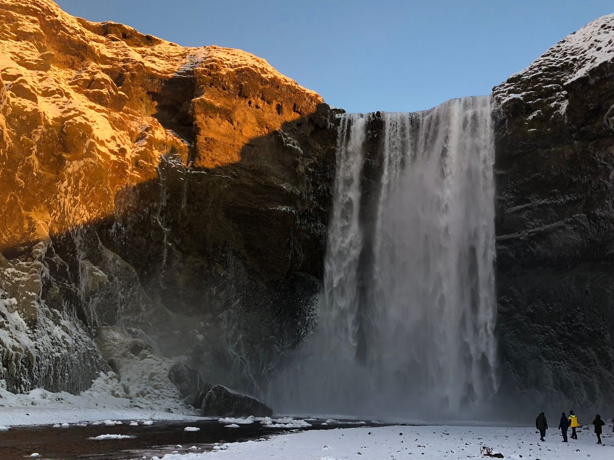 氷河湖は時期が冬でないためか、沿岸からは氷河が少ししかないように見えた。湖の周辺を歩くのもいいが、氷河をもっと見たい場合は、当日に申し込める船のツアーに申し込んだ方がいいかも。氷河湖周辺はフードトラックが3つぐらいと小さいお土産屋、トイレがあるぐらい。最後の滝に着いたときは、辺りは真っ暗でよく見えず、滝はライトアップされている。
