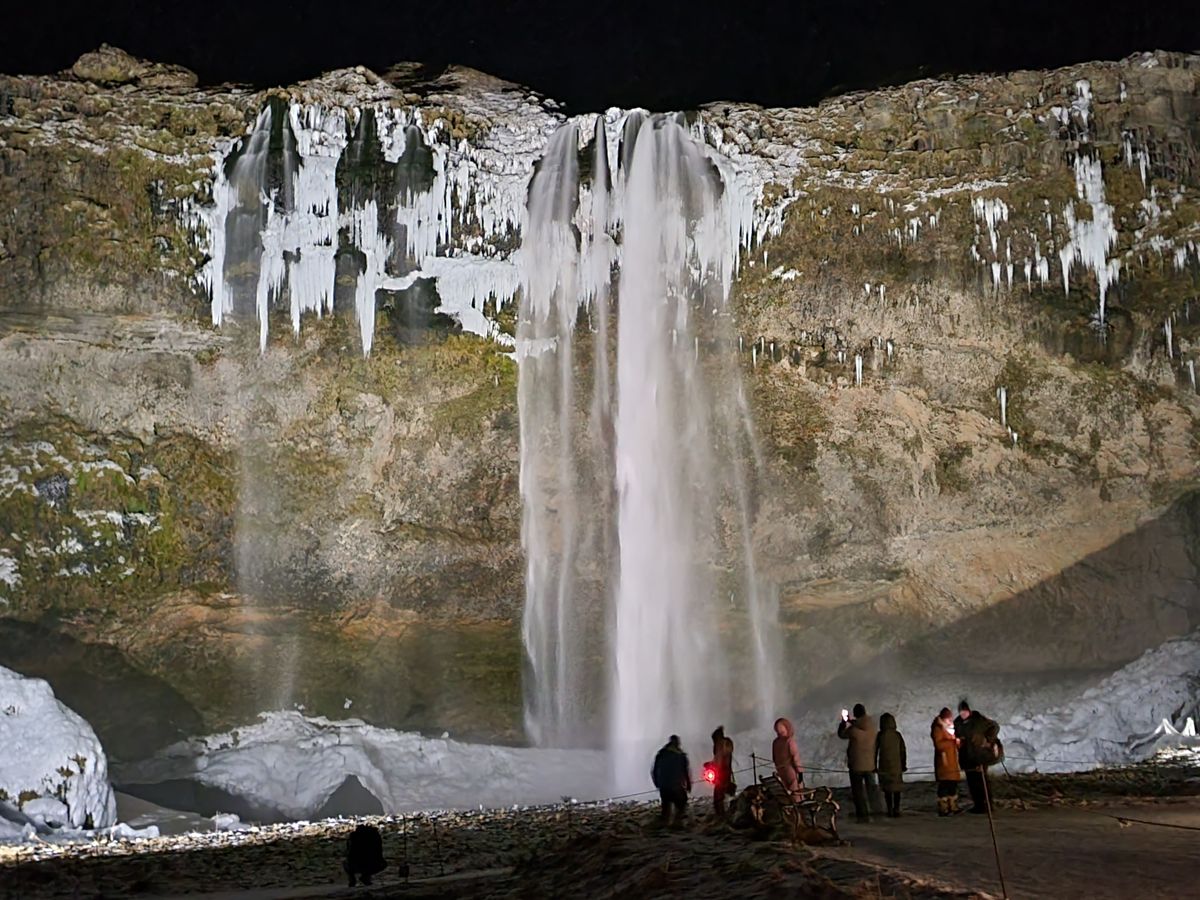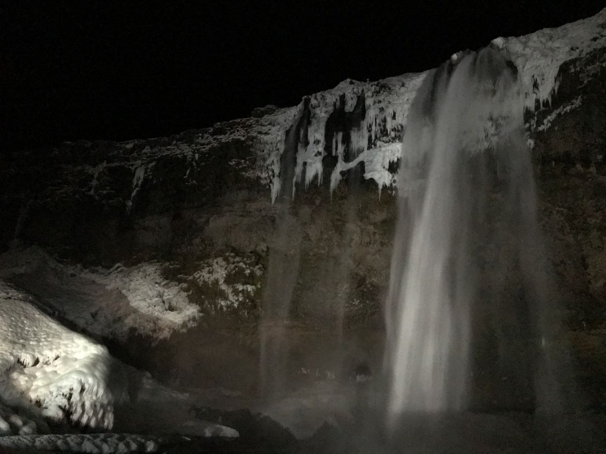 20:15~20:35 ライトアップされた【セリャラントスフォスの滝】へ