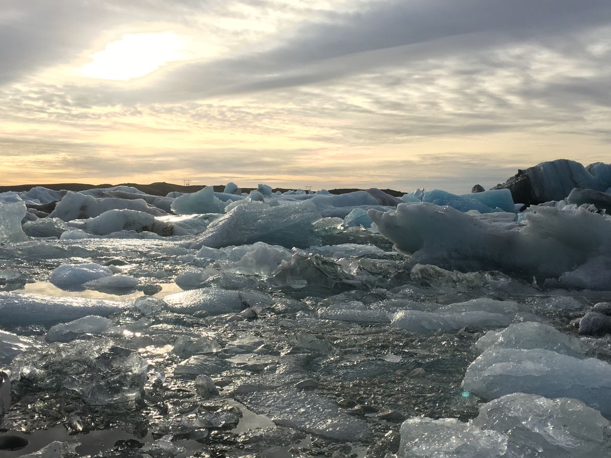 夕日に照らされ青く光る氷河は美しかったです。氷河の上に乗り写真を撮ったり楽しい時間を過ごせました。その後立ち寄った氷河が打ち上げられたダイアモンドビーチは透明の氷の自然の彫刻と黒砂の対比がとても美しい芸術でした。見たことのない景色を見ることができ良かったです。
